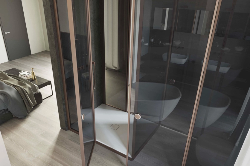 Adaptable à toutes les configurations de salle de bain, ce système permet de créer des cabines de douche entièrement sur mesure, intégrables au millimètre près dans toutes les configurations architecturales possibles.