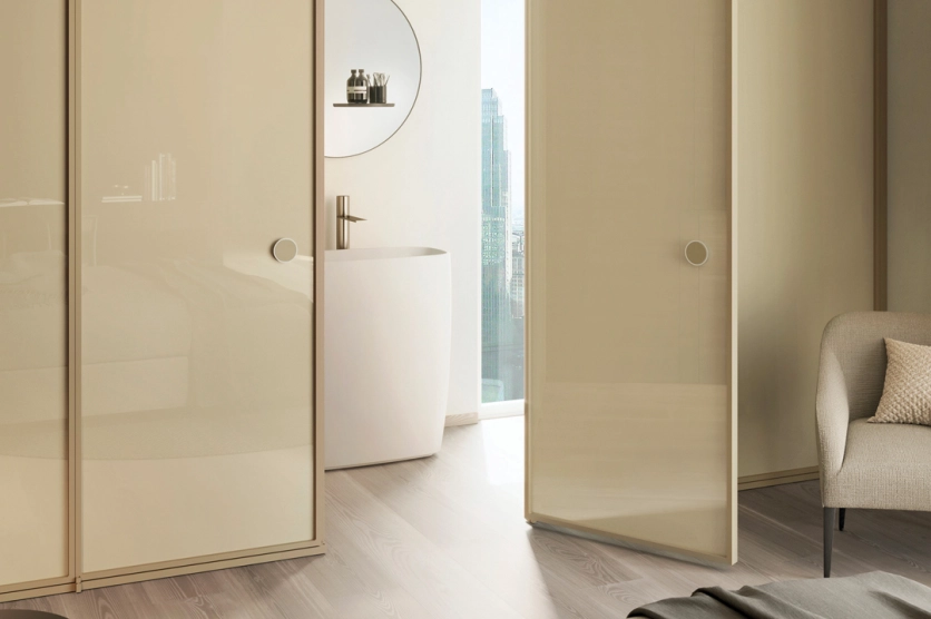 Il s’agit d’un système de panneaux fixes et de portes en aluminium et verre développé par notre partenaire Vismaravetro.