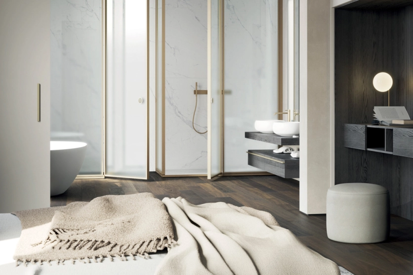Réalisées selon les désirs et les besoins du client, et dotées d’une étanchéité irréprochable, les cabines modulables de la gamme Suite sont particulièrement adaptées à une installation en suite parentale.
