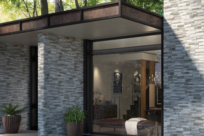 Les fans de pierre traditionnelle pourront choisir le parement en pierre naturelle ou reconstituée, et ceux qui préfèrent les designs plus contemporains préféreront les parements en grès cérame. Le tout à poser aussi facilement qu’un carrelage classique !
