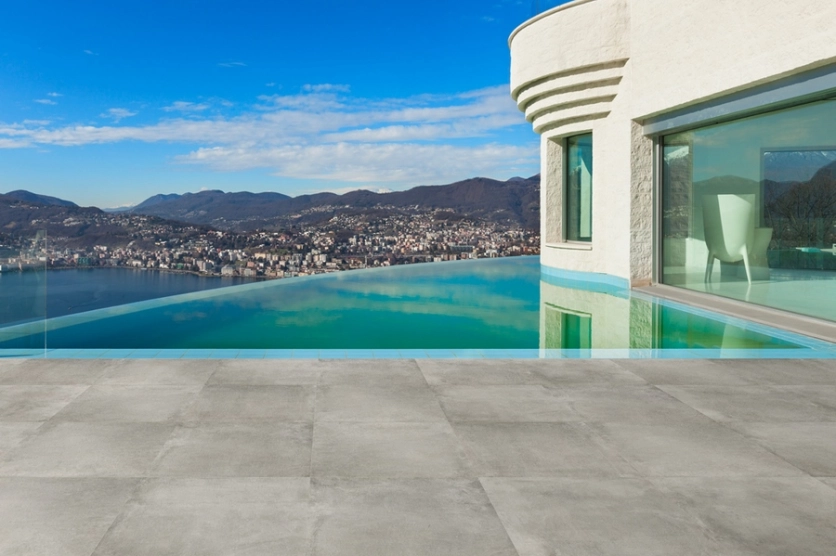 Pour jouir pleinement de sa piscine et de toutes les activités dont on ne se lasse pas autour — bronzer, jouer, lire, dormir, ne rien faire…— il convient non seulement de choisir le revêtement intérieur du bassin — mosaïques en pâte de verre, carrelage de piscine, pierre naturelle…— mais également celui qui ornera les abords : plages, margelles, mais aussi terrasses.