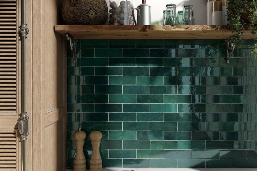 Et pour encore plus de présence, pourquoi ne pas marier le carrelage vert émeraude avec des matériaux tels que le marbre, le carrelage imitation bois, ou le carrelage effet métal, pour profiter ainsi des possibilités infinies de décoration ?