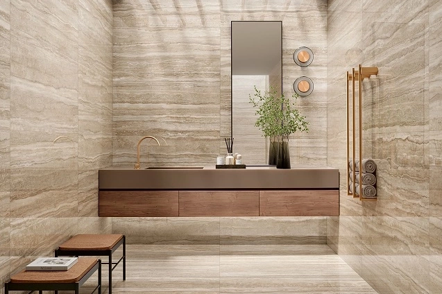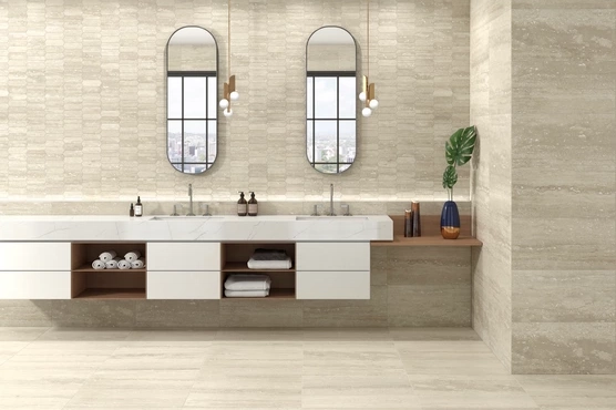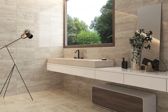 Carrelage aspect travertin
