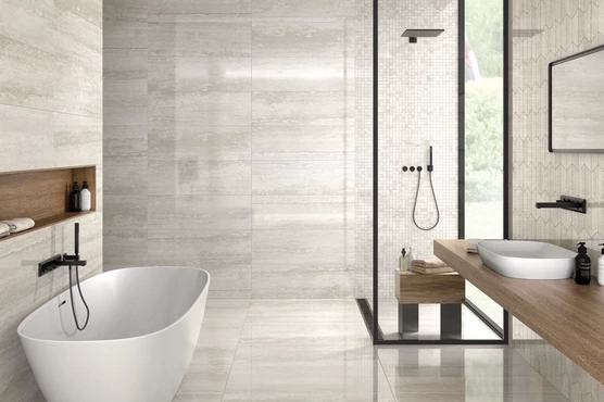 Salle de bain autour du travertin