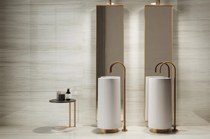 Chaque détail de ces carreaux, de la texture au design, en passant par ses formes et ses dimensions XXL, est pensé pour recréer une ambiance raffinée, digne des plus beaux hôtels 5 étoiles. La durabilité du grès cérame, sa facilité d’entretien, son élégance naturelle qui s’adapte à tous les styles, du plus classique au plus contemporain… toutes ces qualités se réunissent pour faire de votre salle de bain un petit joyau dédié au luxe et au bien-être.