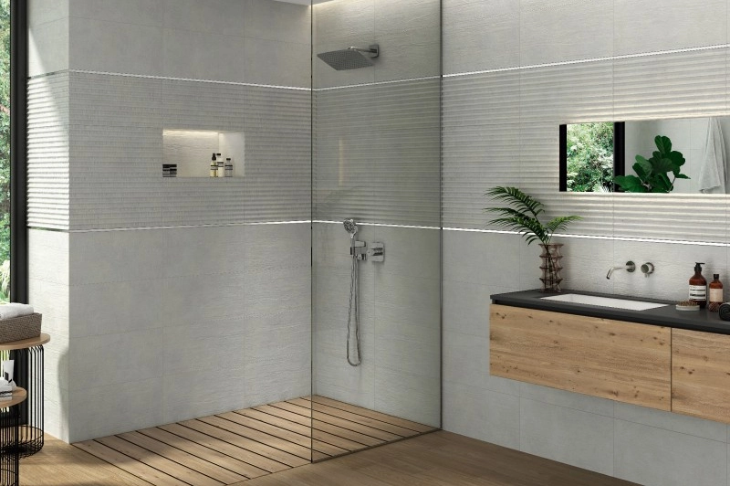 À la fois urbaine et raffinée, la collection Model est basée sur un style industriel très tendance. Les surfaces invitent au toucher par leur volume et leur texture, et les couleurs fraîches et douces des carreaux de sols et de murs sont rehaussées par de délicates décorations en relief.