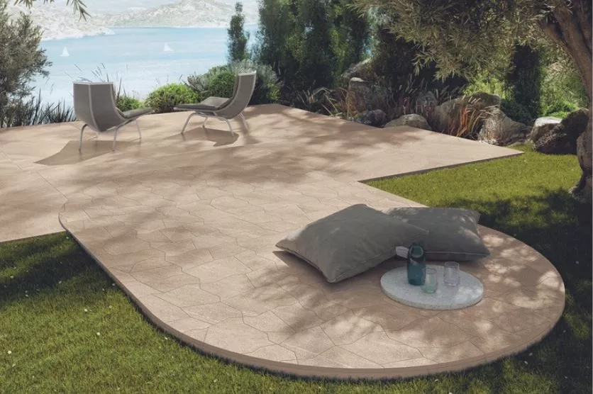 Pour un rendu doux, épuré et minéral, optez pour un carrelage effet pierre claire. Il offre une belle continuité dedans-dehors, parfait pour agrandir visuellement les espaces et créer une ambiance méditerranéenne ou zen.