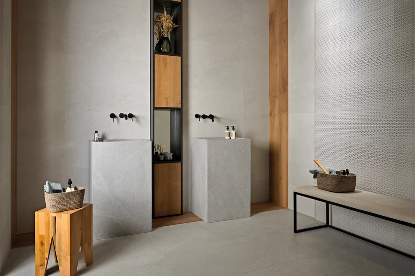 Déclinée dans une gamme de couleurs polyvalentes qui se marient parfaitement avec tous les styles de décoration, Mysteria s’invite sur les sols et les murs, et crée une sensation d’espace qui se prolonge vers l’extérieur sans variation de couleur ou de format.