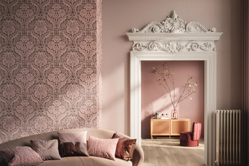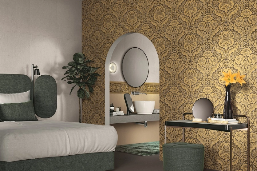 Avec ses décors effet papier peint, cette nouvelle gamme de carrelage pour les murs et le sol nous transporte immédiatement dans un univers magique, où fleurs, branches d’herbe, toile de Jouy, damassé, ton sur ton se coordonnent avec une palette d’unis intenses prenant l’aspect d’un ciment taloché à la main. Les frises et autres panneaux décoratifs viennent parfaire une impression de majesté.