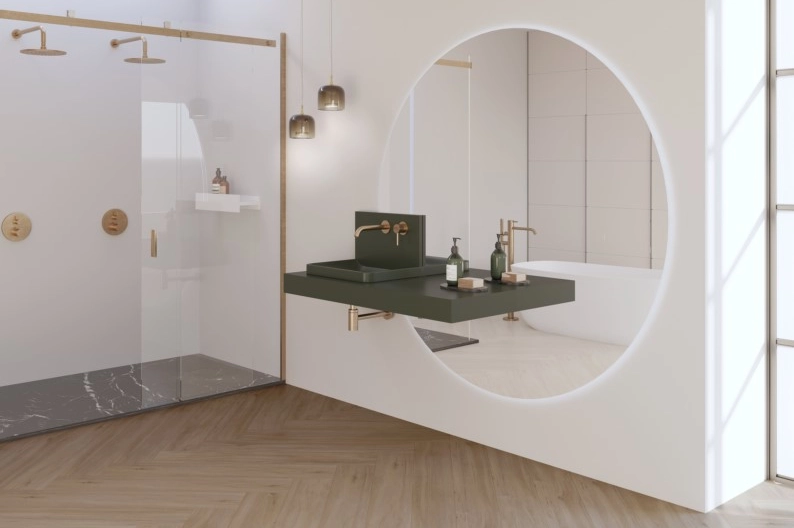Avec un éclairage LED intégré sur tout son pourtour, il amène du volume et de la profondeur dans une pièce par nature toujours un peu resserrée.