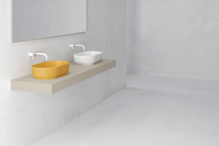 Rendez-lui sa bonne humeur en jouant avec les couleurs de vos vasques, receveurs de douche, baignoires et autres toilettes.