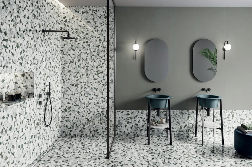 C’est l’occasion de mettre en avant cette couleur énergisante ou reposante, au gré de ses nuances. Justement, quel vert choisir ? un vert sapin, naturel et profond ? Un vert gazon, vif et joyeux ? Un vert d’eau, lumineux et transparent ? Un vert émeraude, profond et chaleureux ? Ou plutôt amande ? prairie ? bouteille ? jade ? Le choix est infini, et offre une latitude illimitée pour choisir le carrelage et créer les ambiances de la maison. Il se décline en version unie, ou bien à fantaisies géométriques, ou encore à motifs floraux…