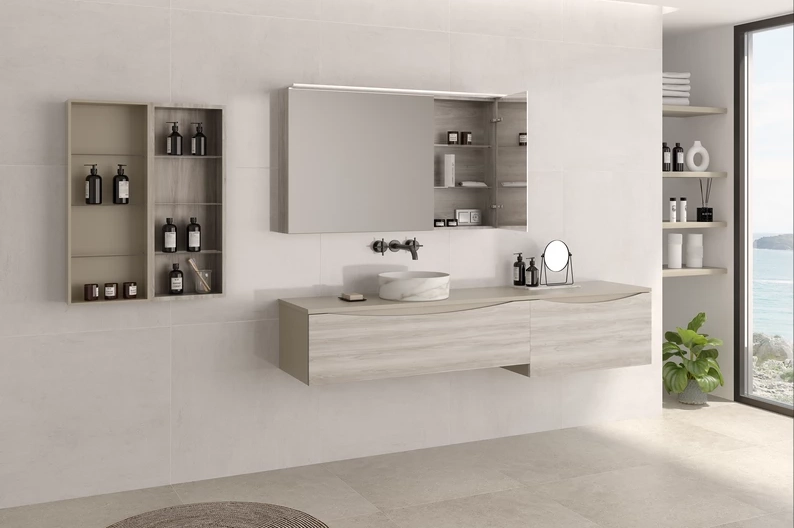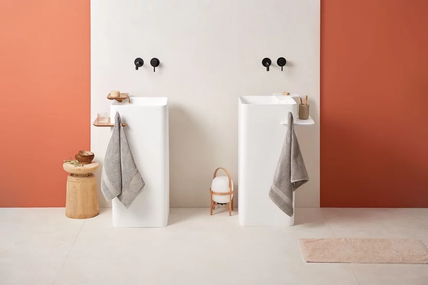 Aujourd’hui, plus résistantes que jamais, les nouvelles matières pour les vasques et totems de salle de bain s’appellent :