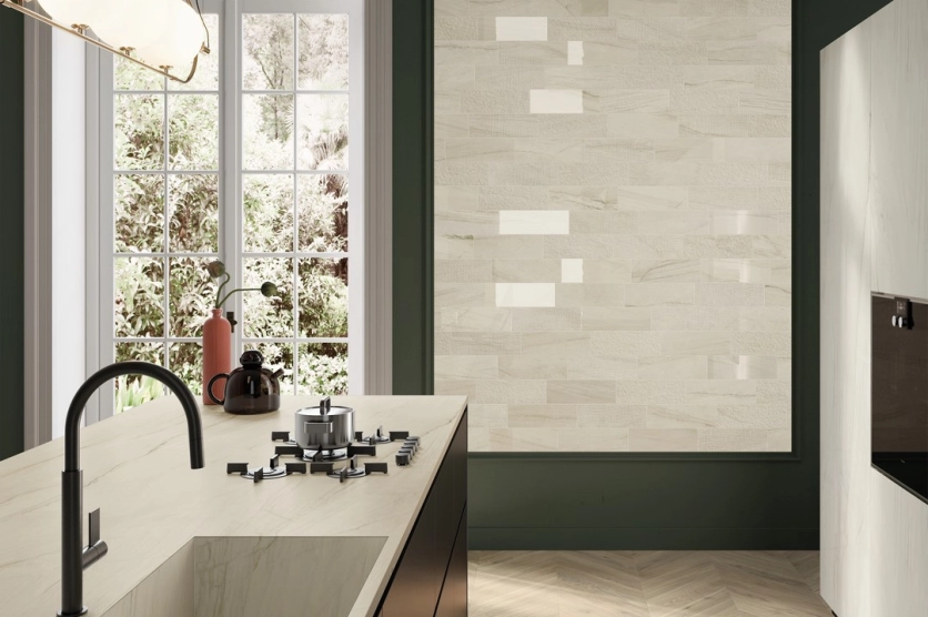Le carrelage SMOOTH rend hommage à sept somptueuses essences de marbre. La pureté naturelle des dalles « effet marbre » crée un alphabet de matières et compose un intérieur au design unique.
