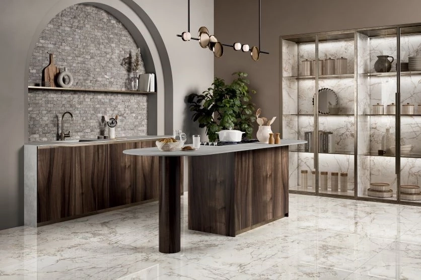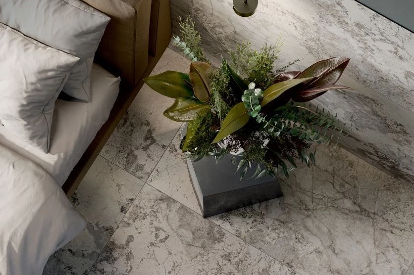 Un effet pierre volcanique en grès cérame pour ce carrelage proposé en format : 120x280; 60x60; 30x60 et 60x120.