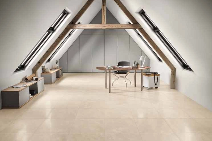 Le carrelage Idéa s’inspire de la pierre Limeston et les motifs de cristaux reflètent l’éclat du mica. Sa finesse graphique et sa résistance offre de nombreuses possibilités d’utilisation au sol comme au mur.