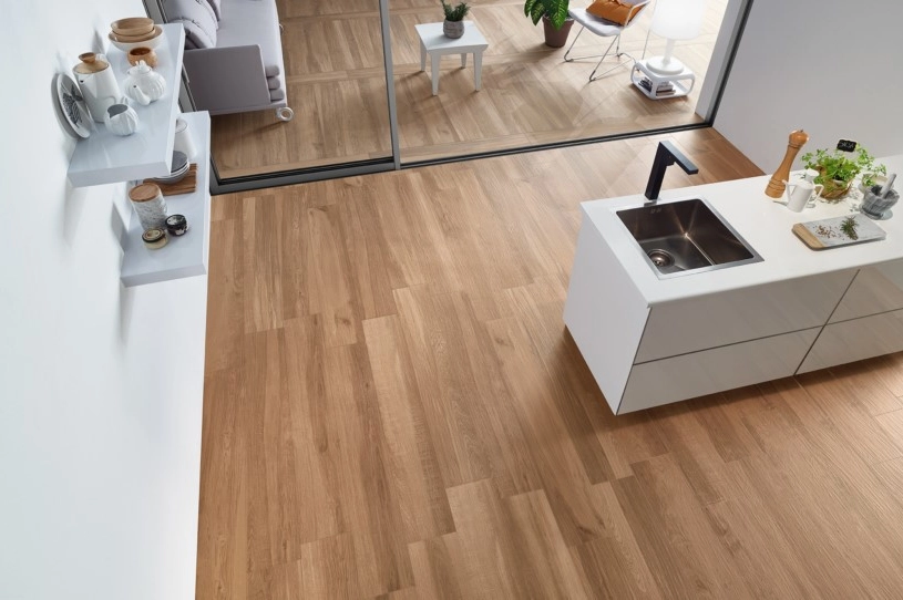 Matera, carrelage effet bois, s’inspire de la robustesse du chêne. Le graphisme élégant des veines et des nœuds typiques et l’effet planche coupée dans le sens du bois, en font une collection incroyablement réaliste.