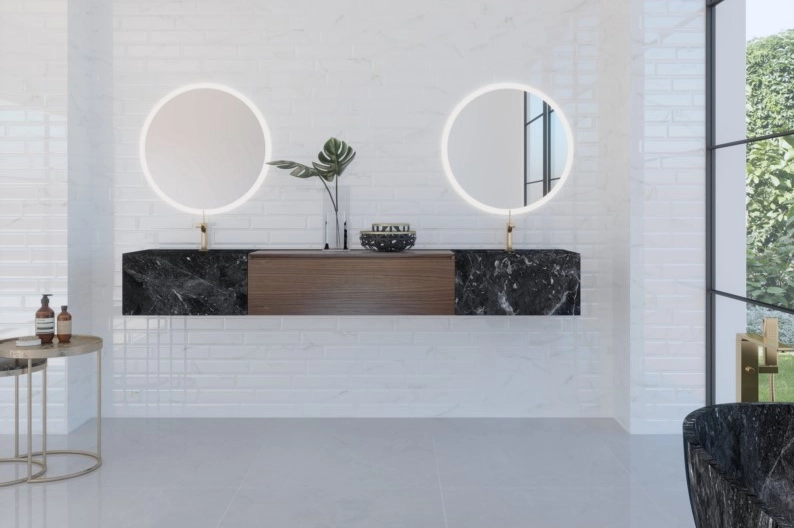 | Vasque Mare en marbre ou compact | 45x100x32 cm | |