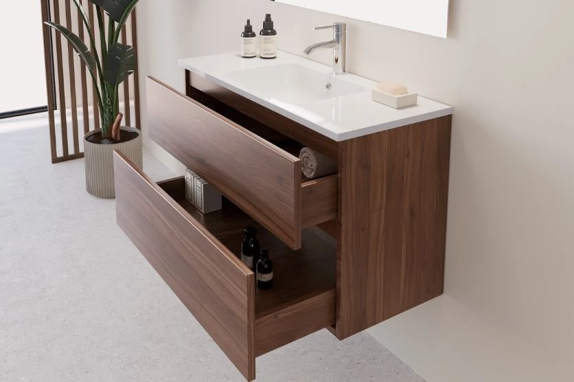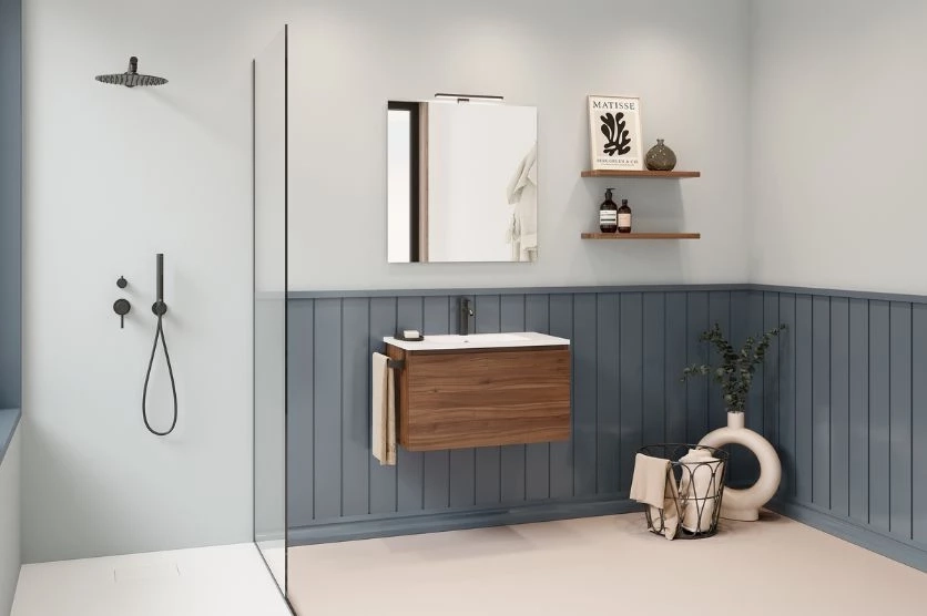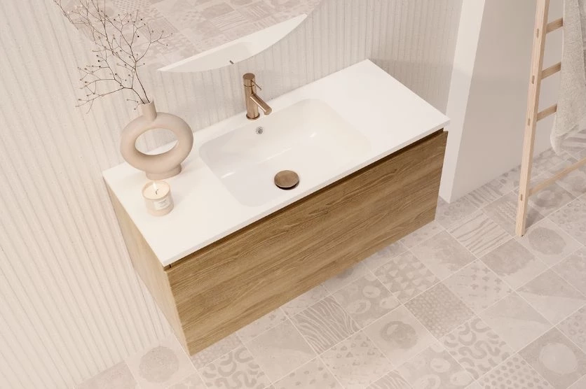 Meuble de salle de bain Smart suspendu avec vasque en céramique. Adapté à tous les budgets.