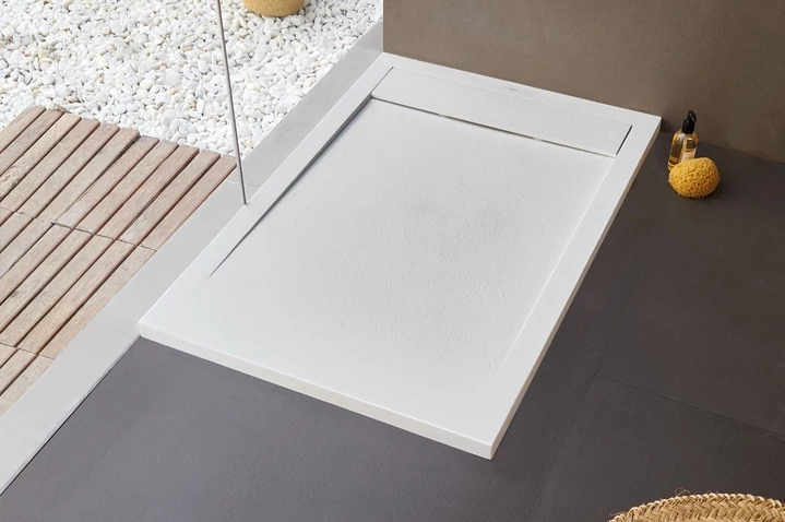 Receveur de douche New York avec caniveaux et pente intégré. Disponible en Blanc mat, Grey et Black. Aspect ardoise.