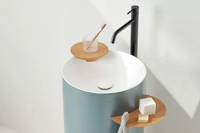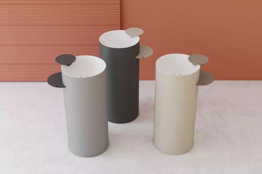 Vasque à poser ou totem rond Circo ou carré Cuadra gel coat blanc mat. Disponible dans tous coloris RAL.